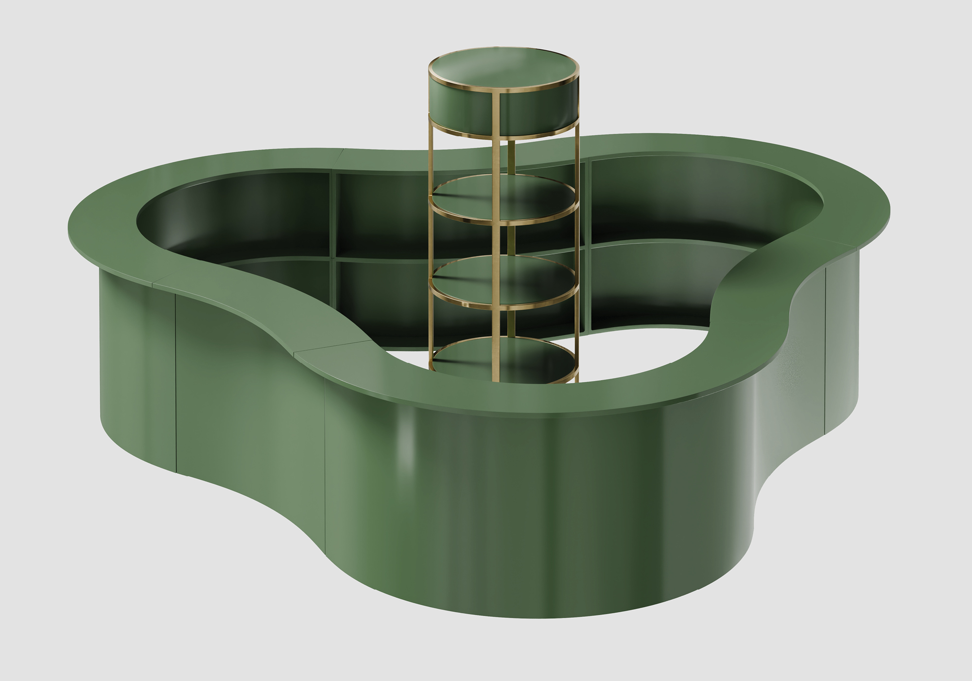Go for this bar with the organic feel if you want an original design that feels natural in any type of space. Can be paired with its matching display stand/back bar. Coming soon!