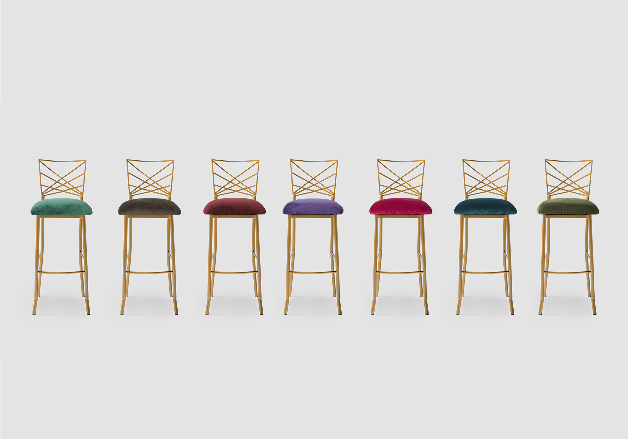 Metal barstool in gold with velvet pillow