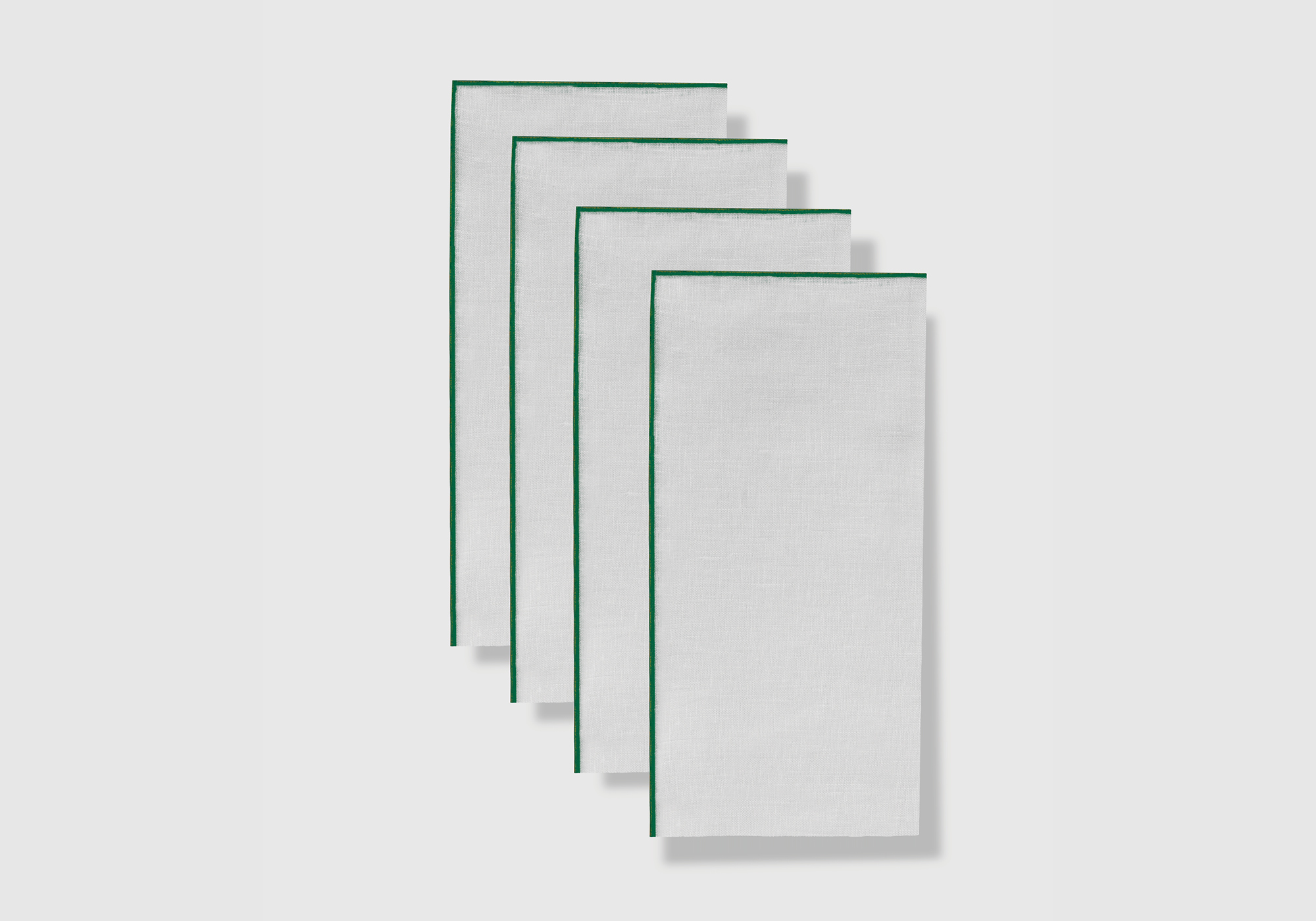 100% white linen napkin with contrasting green locking hem